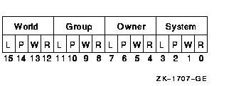 Each field consists of 4 bits specifying protection for the logical name table. The remaining bits in the protection mask are as follows: