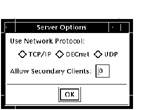 In addition, the Options button invokes the Server Options dialog, which allows you to select the network transport to be used (see Section 11.5.1).