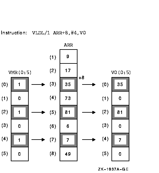 In the following examples, VLR has the value 6 and VMR(0:VLR--1) has the following set of values:
