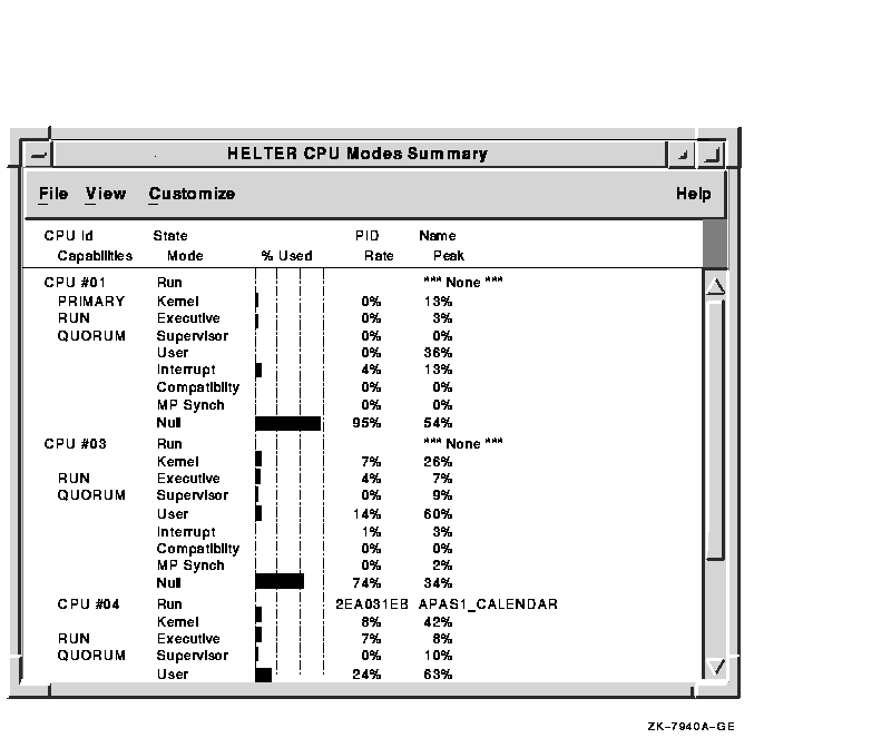 The CPU Modes Summary window shown in Figure 3-8 displays more
