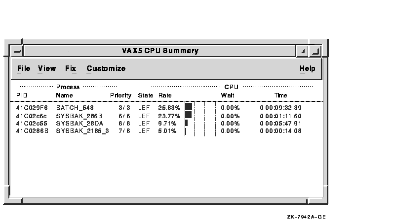 Rate | The percent of CPU time used by this process. This is the ratio of CPU time to elapsed time. The CPU rate is also displayed in the bar graph. |