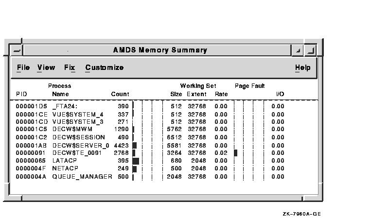 The Memory Summary window shown in Figure 3-10 displays memory usage