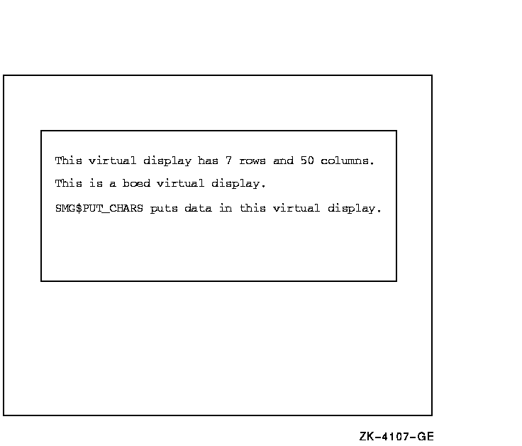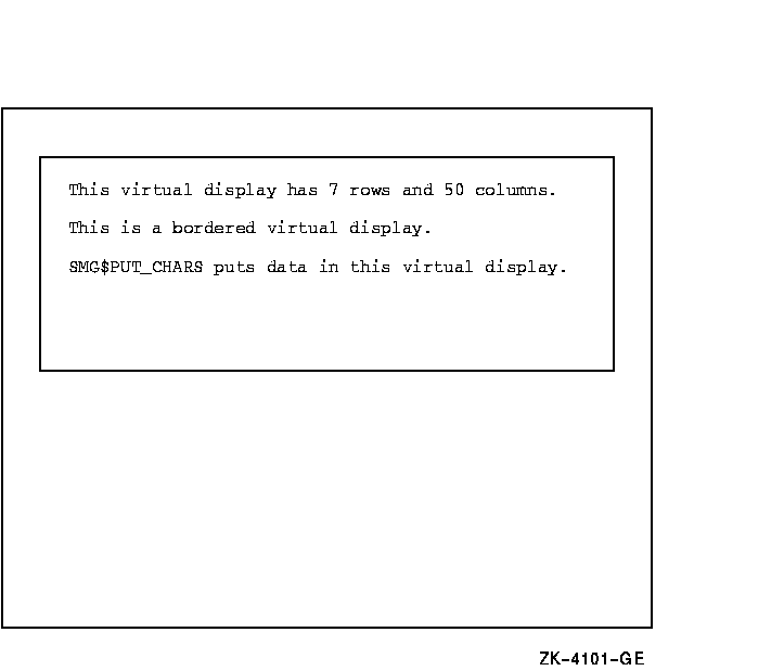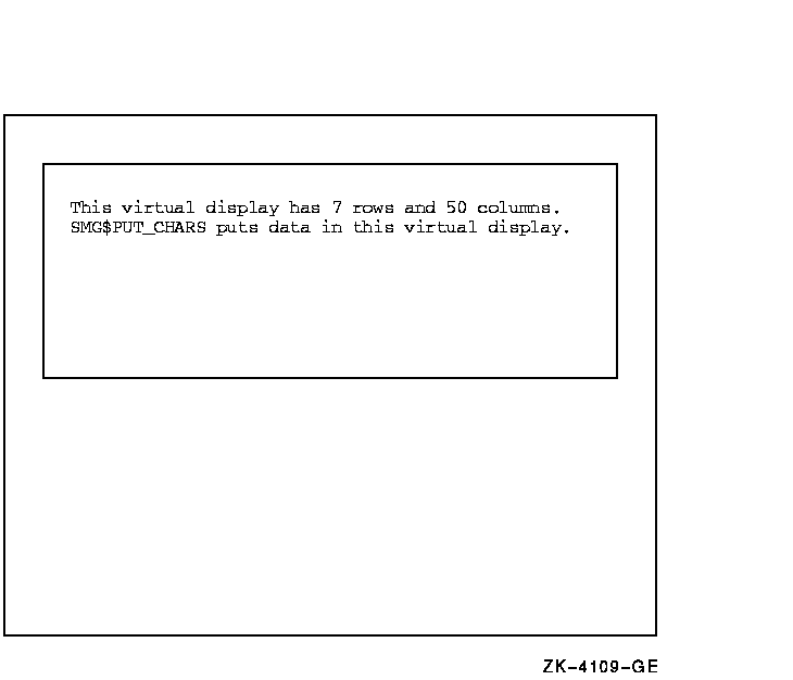 1 ' SMG$PUT_CHARS puts data in this virtual display.', 6, 1)