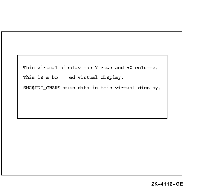 1 ' SMG$PUT_CHARS puts data in this virtual display.', 6, 1)