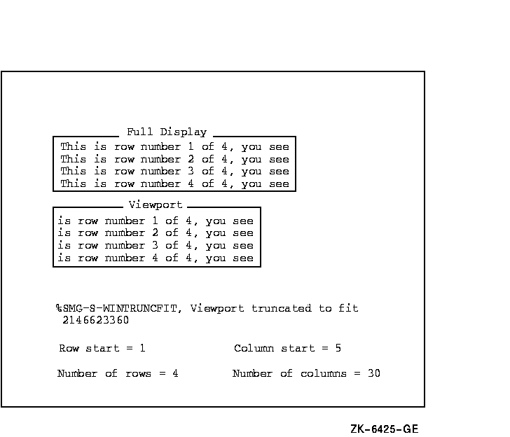 Figure SMG-26 Output Generated by SMG$GET_VIEWPORT_CHAR