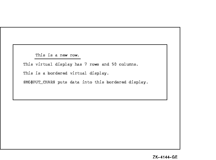 1 ' SMG$PUT_CHARS puts data in this virtual display.', 6, 1 )
