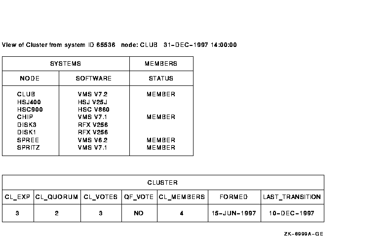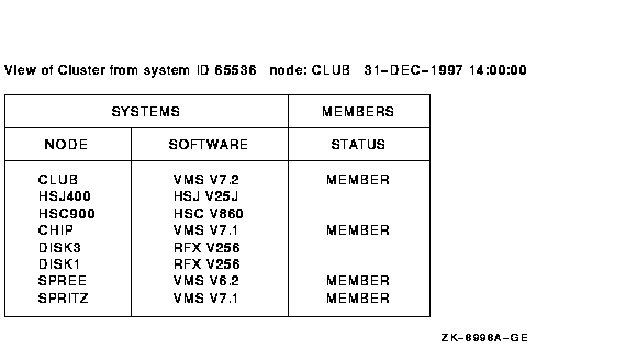 Figure 20-1 SHOW CLUSTER Default Display