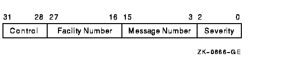 The message argument vector includes the message code, a 32-bit value that uniquely identifies the message. The message code, which is created from information defined in the message source file, consists of the following: