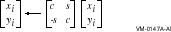x = array x specified in x y = array y specified in y i = i = 1,2,...,n c = rotation element generated by the BLAS1$VxROTG routines s = rotation element generated by the BLAS1$VxROTG routines incx
