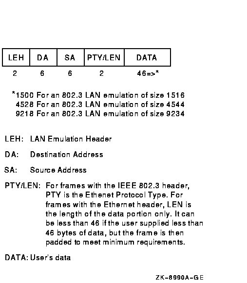 Figure 9-8 LAN Emulation Data Frame Format with IEEE 802.3/Ethernet Header