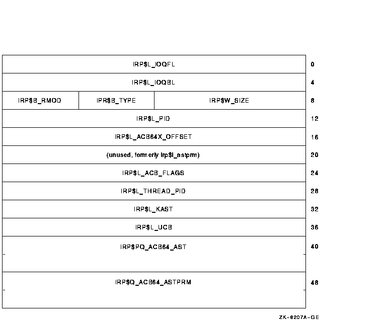 An IRP created by the $QIO system service uses the ACB64 layout unconditionally.