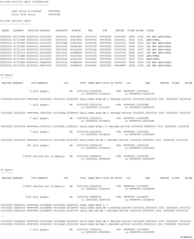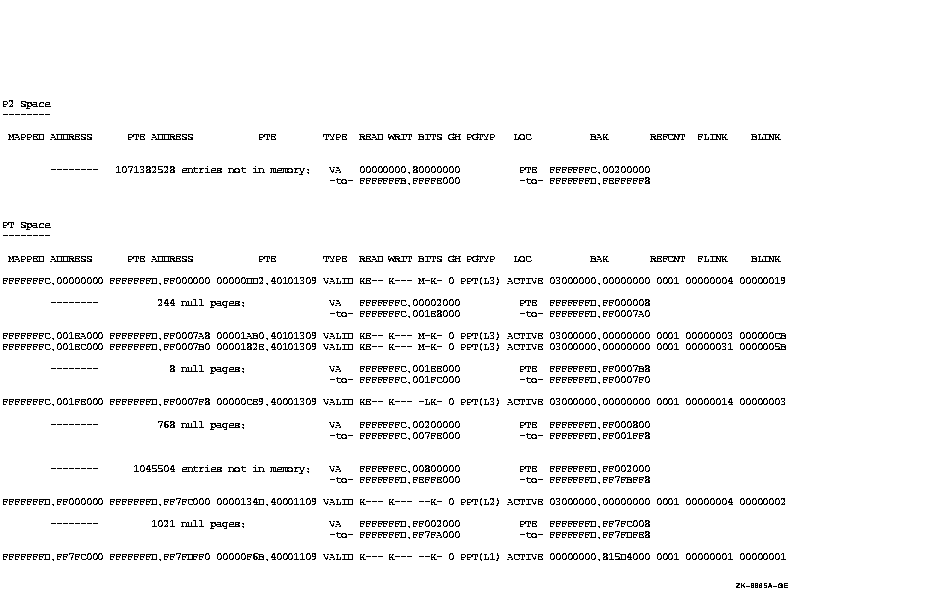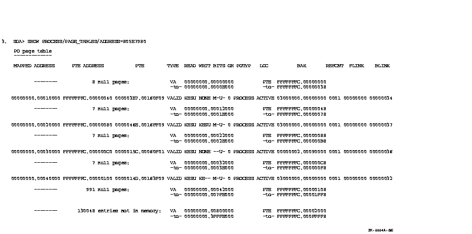 This example displays the page tables of a process whose PCB address is 805E7980.
