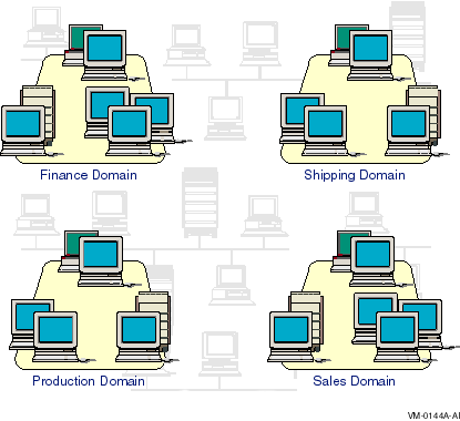 Grouping computers into domains offers significant benefits to network administrators and users. The first and most important benefit is that servers in a domain form a single administrative unit that can share security and user account information. Every domain has one database that contains user and group accounts and security policy settings. Every server in the domain can maintain a copy of this database. As a result, administrators need to manage only one account for each user, and each user needs to use only one account. By extending the administrative unit from a single computer to an entire domain, the Advanced Server saves administrators and users time and effort. Figure 2-1 shows four domains set up as basic administrative units on a network.