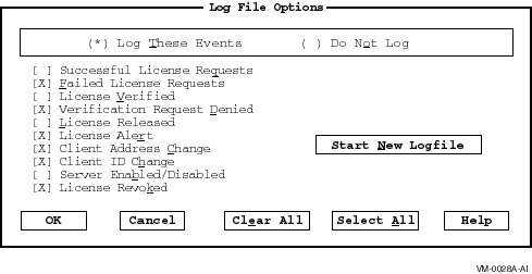 License server tasks include managing the license server log files and enabling and disabling the license server. These tasks are performed through the following Options menu items: