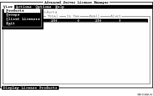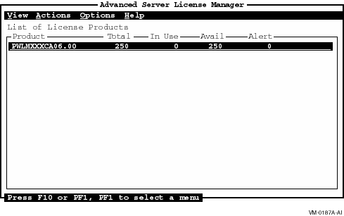 When you start the License Manager, the screen shown in Figure 4-1, Main Menu Screen, appears.