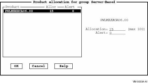 You cannot allocate licenses to the Default group. If you specify a product under the Default group, you can set only its alert level in this dialog box. |