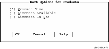 By default, the list of products are displayed by product name. Use the following steps to specify a different sort option: