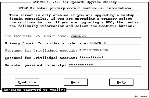 If you are not changing domains, select the Continue button to advance to the Primary Domain Controller Information screen.