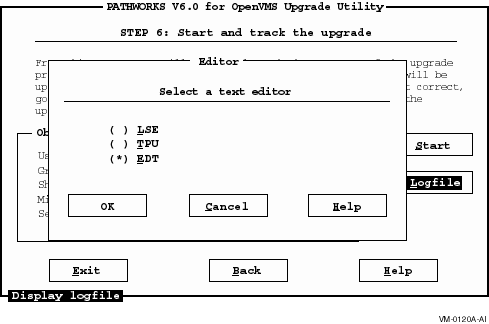 The Logfile button allows you display error messages logged during the upgrade, as described in the following section. Refer to Section 5.7, Troubleshooting, in this guide, for more information. |