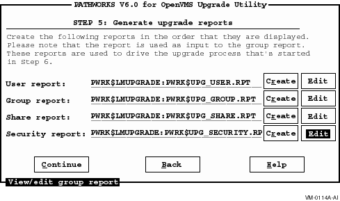 Cancel the upgrade and return to the previous screen, where you can edit the upgrade report | Cancel button or enter Ctrl/Z. |