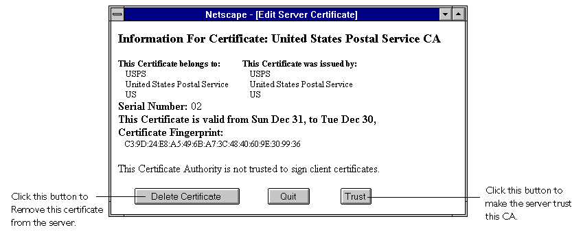 You can view, delete, or edit the trust settings of all the certificates installed on your server. This includes your own certificate and certificates from CAs.