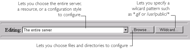 In many parts of the server configuration, you specify wildcard patterns to represent one or more items to configure. Please note that the wildcards for access control may be different from those discussed in this section.