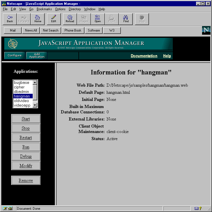 You can also start, stop, and restart an application by entering a special URL of the form: