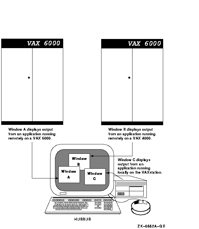 By running applications on a remote processor for local display on your workstation monitor, you can take advantage of larger computers that might be better suited to a specific computing task. By default, applications running on your workstation are displayed on your workstation. While DECwindows must be available on both nodes, only the display node must be a workstation.